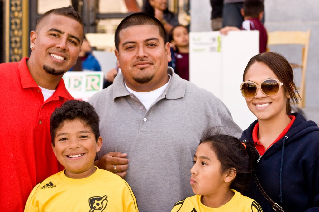 They waited on the steps as the Mayor spoke to the students, telling them that they, too, could be Mayor someday, since they’ve already shown that they love their community. He went on to proclaim the day “America SCORES Bay Area Day for Sport for Change.” Finally, Coach Edgar and Diego stepped up to receive the Mayor’s Award for Civic Engagement.